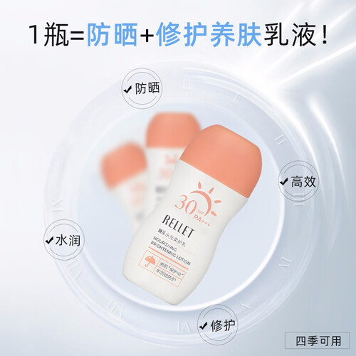 全波段的防晒效果,结合防晒指数30+,给予肌肤持久的防护。高倍的修护力,改善晒伤后的肌肤,让肤色更加均匀白净。