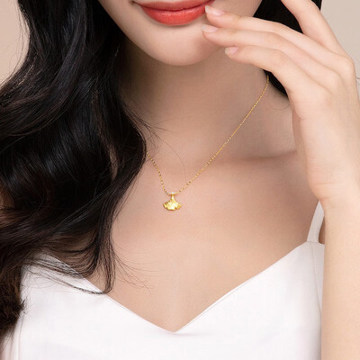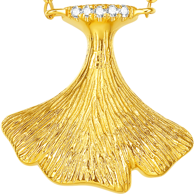 采用了银杏叶造型的设计,飘逸优雅,具有浓厚的少女感。另以钻石点缀,更能凸显出女性的锁骨魅力,知性优雅。