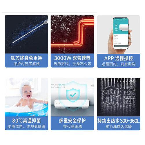 3000W双管速热,升温速度给力,澎湃热水即刻到场。独立排污口设计,便于您后续进行清洁,使用感受可以更好。