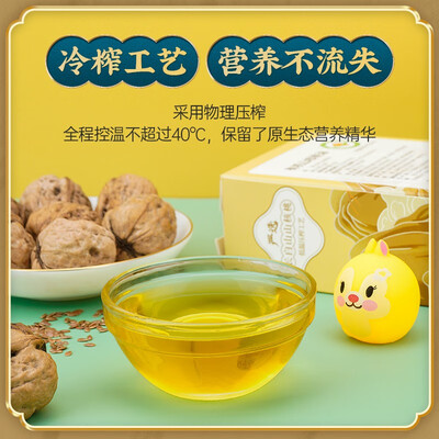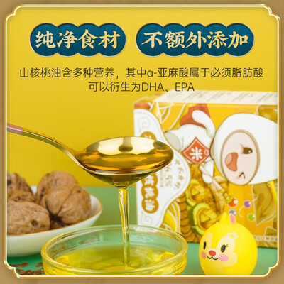 选用长白山山脉的野生山核桃,内质丰富且油脂丰厚,低温初榨萃取第一道油脂,锁留更多优量DHA,促进宝宝智力健康发育。