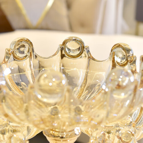采用水晶玻璃打造,创意花瓣造型,看起来颇有格调,搭配五格设计,可将水果、零食区分放置,取食更方便。