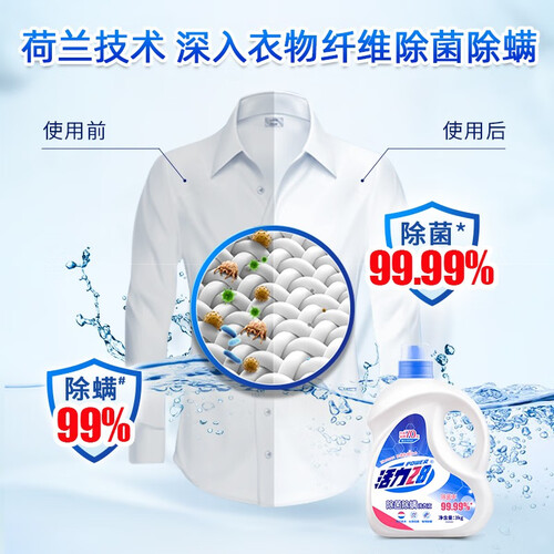 采用荷兰除菌技术,去除衣物大部分细菌,呵护肌肤不受危害。温和洁净因子搭配去污增效因子,去污强力,防止污渍再附着。