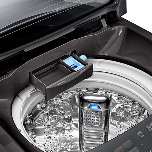 变频直驱电机,具有强劲旋转力,变频立体洗,瀑布式强劲大水流,自上而下冲洗衣物,洁净再升级,健康洗护。