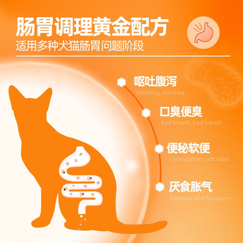 益生菌数量高达1000亿,可帮助维持肠道内菌群平衡,肠胃更轻松。均衡配比营养,轻松满足爱宠每日营养摄入所需。