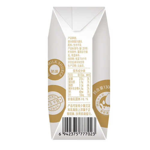 每100毫升中含有的优质蛋白高达3.9克,同时含有130毫克钙质,皆高于普通牛奶的标准,营养价值极高。