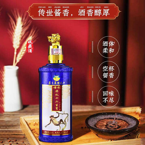 酒体醇厚丰满,洋溢着浓浓的大酱风味,香气悠长不散,瓶体饰有精美插画,具有观赏性,是您走亲访友的佳品。