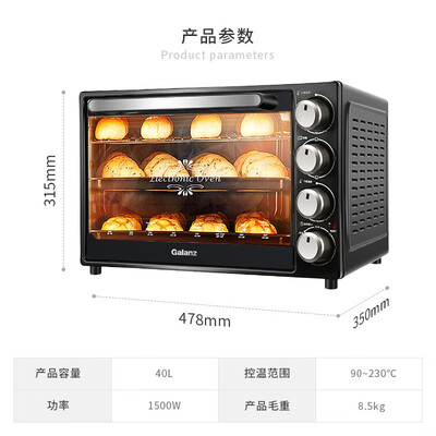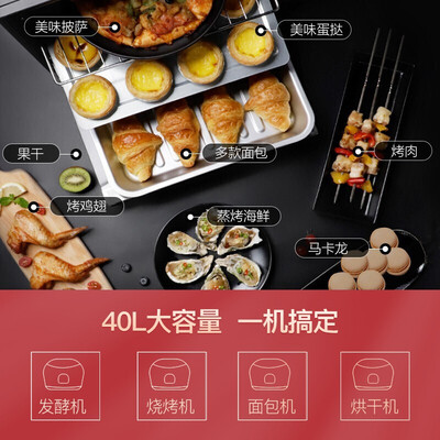 采用加深设计,拥有40L大容量,一次可烤12寸披萨;拥有四旋钮独立控温,可实现上下独立控温,上色更均匀,轻松搞定网红面包。