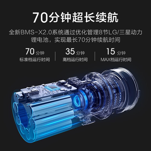 70分钟的超长续航能力,中途不充电,大户型复式都可以轻松搞定。搭载强劲吸力,搞定各种灰尘,让家庭空间更干净。