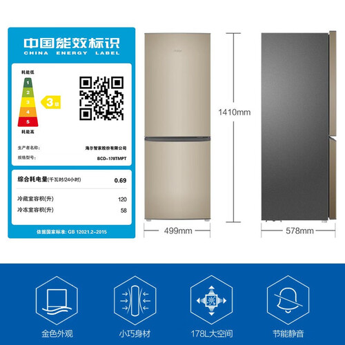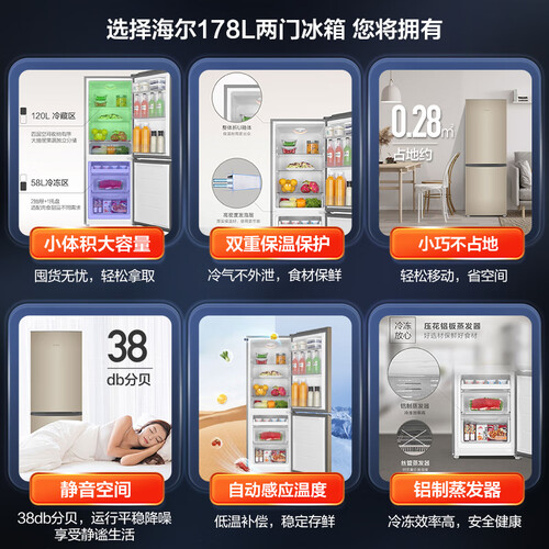 冰箱的运行噪音低至38分贝,不会影响家人休息。压花铝板蒸发器,耐腐蚀,经久耐用。