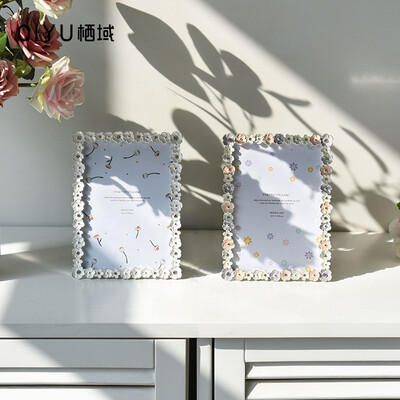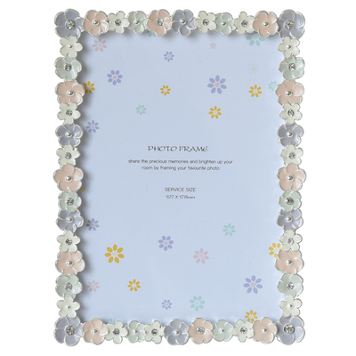 边框有五瓣花点缀,让相框充满格调,摆放在家中能有效提升空间质感。背面是绒布效果,还有旋转拨扣设计,更换照片方便。