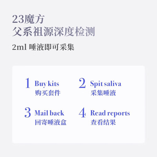 父系祖源深度检测,找到姓氏家族历史,仅需唾液采集即可基因寻宗,与宗亲一起探索家族历史,足不出户四步完成基因检测。