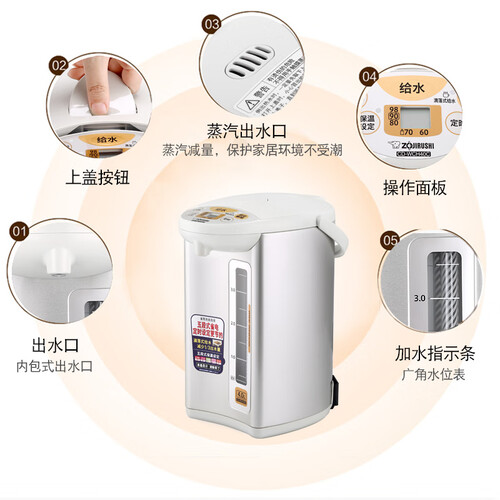 这是一款含有多种温度的电热水壶,可以用来做各种温度的冲泡,烧水十分静音,不会打扰家人休息,蒸汽减量,家具不会受潮。