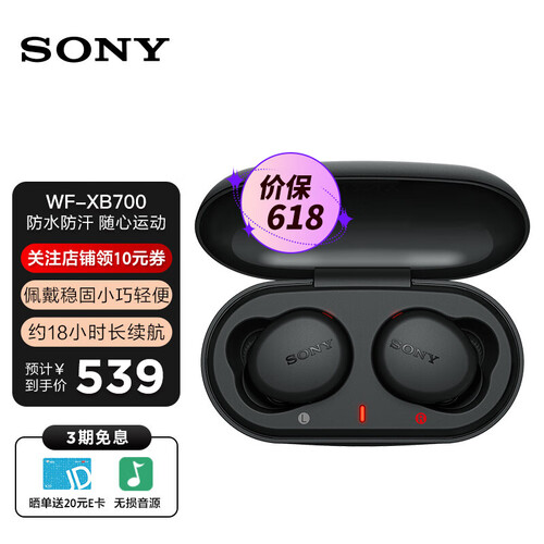 舒适稳固的佩戴,索尼超重低音技术,让你畅享动感运动旋律。耳机单次使用9小时,配合充电盒实现18小时续航,满足运动需求。