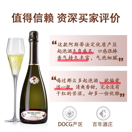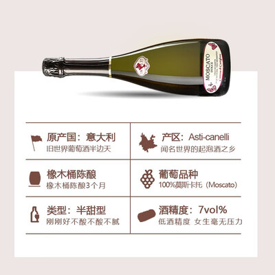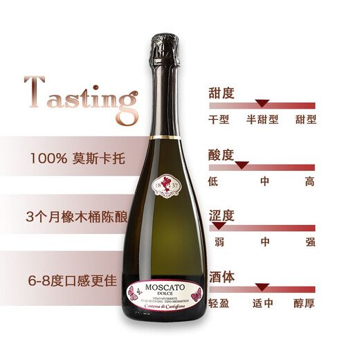 低酒精度半甜型,是米其林餐厅的常用酒款,中西餐都方便搭配。口感清爽优雅,香气馥郁,具有气泡细腻的特点。
