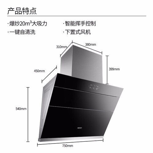750mm精致机身,能安装到更多厨房,为烹饪提升便利。支持20m³/min大风量,时刻保持橱柜洁净,丝毫没有油腻感。