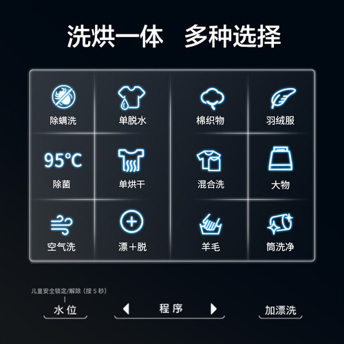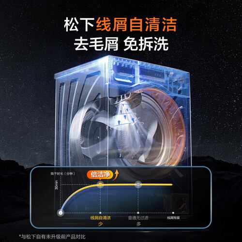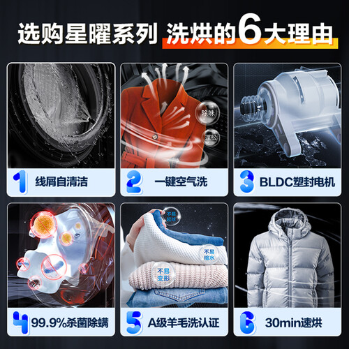 不锈钢的滤网设计,可以去除毛屑,筒内更干净。30min空气的程序,可以去除衣物异味,带来清新的衣物。