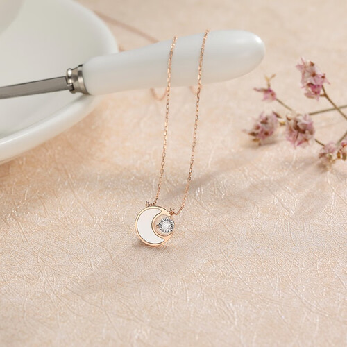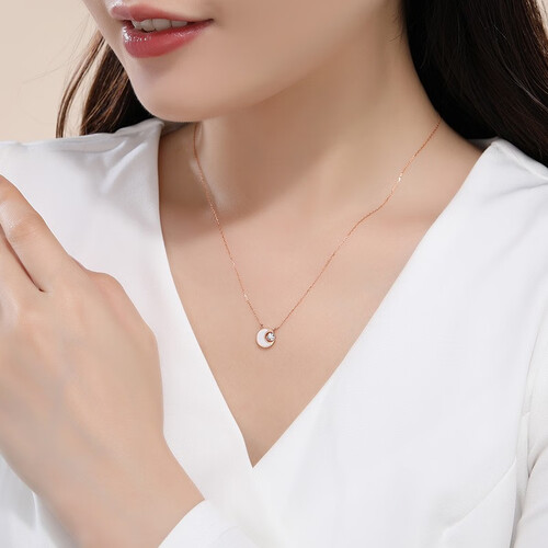 这款项链吊坠将贝母和钻石相结合,款式梦幻浪漫且搭配性强,日常可搭配不同风格服装。玫瑰红K金项链,光泽柔和衬肤。