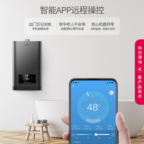 巡航保温热水,让你一打开花洒或水龙头,就能立马使用。WiFi智能控制,远程可预约操控节省时间。