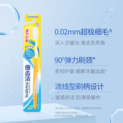 采用0.02mm进口细软毛,可深入牙齿缝隙和牙龈沟位置,清除污垢残留。牙刷颈部可弯曲,缓冲过大的压力。