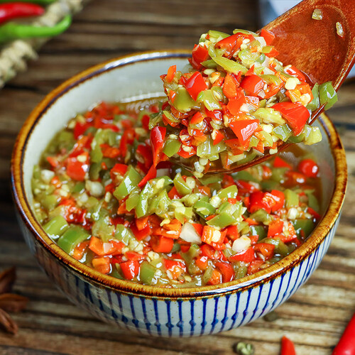手工剁椒,滋味和营养得以封存,滋味更清新。而且配方中无防腐剂,健康安全,食用放心,是宅家下饭常备酱菜。