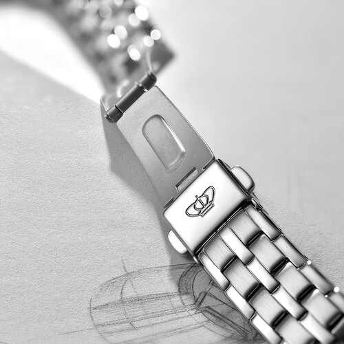 立体字钉的设计,增加了表盘的层次感和设计感,凸显您独特的时尚品味。采用双按单开扣,单手也可快速穿脱。