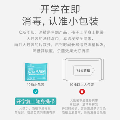 植物纤维交叉排列湿巾尺寸加大,吸水透气亲肤性好拉扯不易破;含有75%酒精,科学配比清洁消毒一起搞定,挥发快用后不黏腻。