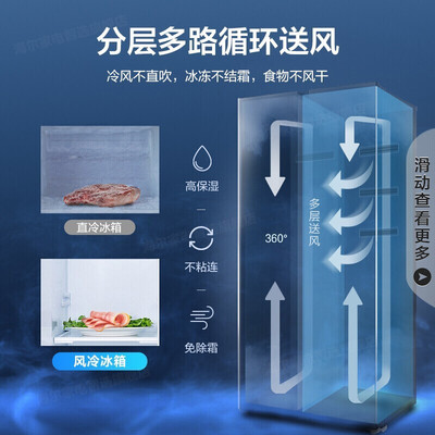 采用多路送风技术,能够均匀送风,让冷风保护食材,锁住水分和营养。同时90度自动悬停门,无需用手把扶,方便取材。