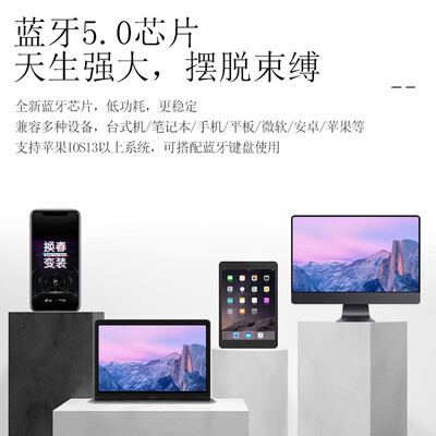 采用蓝牙连接技术,可兼容笔记本、手机、平板等多种设备使用。此外机身表面经过磨砂处理工艺,防汗耐磨,手感舒适。