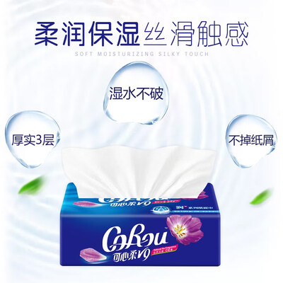 添加了保湿因子,可以有效滋养肌肤,缓解肌肤干燥。纸巾摸起来触感柔软,亲和肌肤,不会掉纸屑,敏感肌可以安心使用。