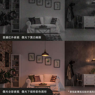 全新微光全彩降噪夜视技术,无惧黑夜,有效减少图形噪点。具备语音双向通话功能,使用APP可向摄像机发起,沟通更方便。