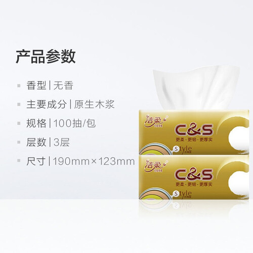 金色包装,时尚大方,沉稳大气,用纸也有高贵风范。每一张纸巾都经过高温处理,有效去除细菌,洁净卫生,使用起来更加放心。