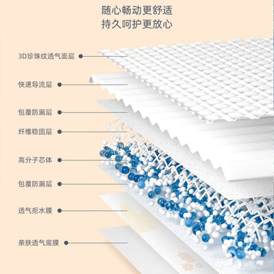 高分子复合芯体,能快速的吸收尿液,干爽透气,不起坨、不断层,宝宝穿着更舒适。柔薄质地,腰围弹性好,助力宝宝轻松学步。