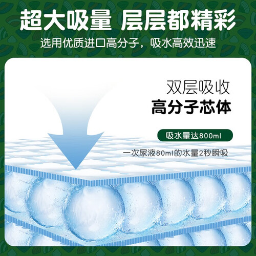 3D立体压纹表层轻薄透气,能够迅速吸收庞大的尿量。褶皱腰围弹力十足,采用了棉花材质,与肌肤的亲和力更高。