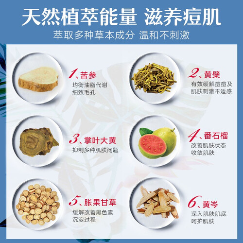 科学的配方,温和亲肤,添加多种植物精粹成分,具有修护痘痘、痘印与粉刺等肌肤问题,同时还能细致毛孔,令肌肤更细腻。