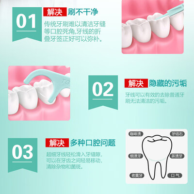 拥有专利保护的这款牙线,它具有折叠设计,将牙线和牙签设计在一体,提升了使用体验;具备高人性的材质,耐磨不易断,剔牙更轻松