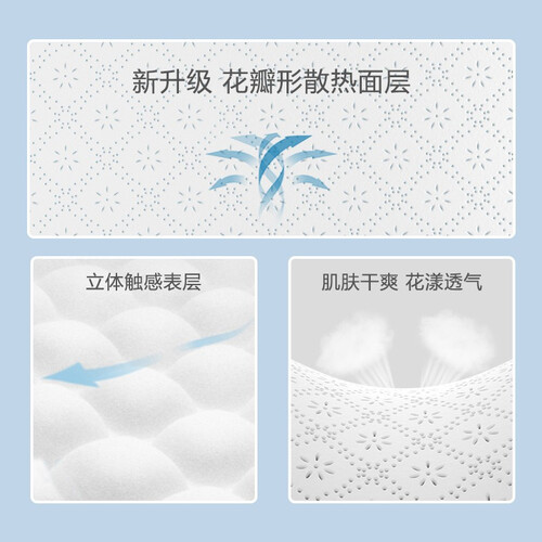 专利艺术浮雕面层,空气自然流通,隔空瞬吸,使肌肤干爽不闷湿。适动型透气腰围设计,贴合腰部曲线,舒适无勒痕。