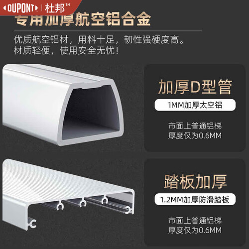 甄选优质铝材制作,具有出色的耐腐蚀能力,不容易损坏;带有多层加厚横梁,保证梯身的稳定性,让你使用起来更为安全。