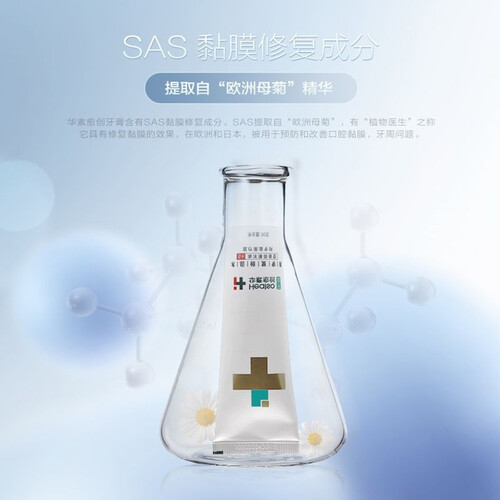 SAS粘膜修复成分的添加,可帮助预防和改善口腔粘腻与牙周问题,减少发炎情况。不含氟,成分温和,可放心使用。