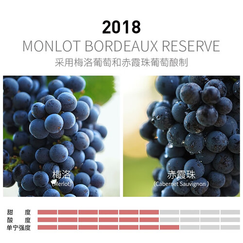 采用梅洛和赤霞珠葡萄酿造,果香浓郁,单宁细腻,被誉为“法国葡萄酒皇后”。酒庄原瓶灌装,法国传统工艺倾心打造,品质优良。