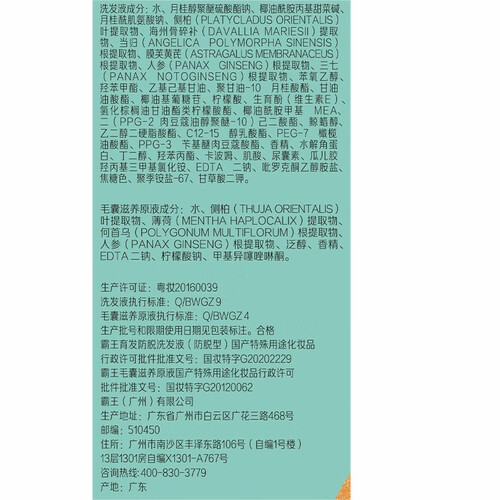霸王 育发防脱 洗发水