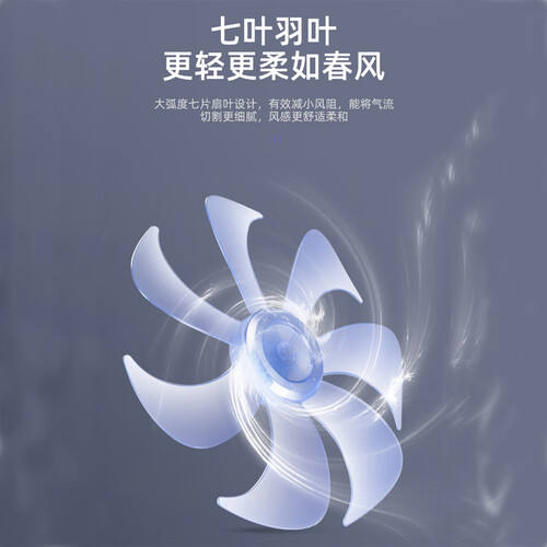 左右自动摇头,增加送风面积,轻松覆盖更大空间。大弧度七片扇叶设计,有效减小风阻,切割气流细腻,减小对脸部的冲击力。