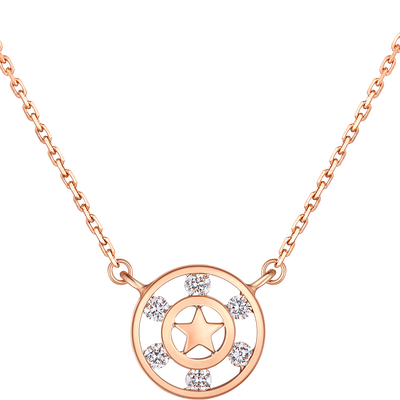 圆环中间五角星造型设计,丰富视觉效果,搭配钻石环绕,璀璨绚丽,散发迷人光芒。背部镂空设计,有效增大透光量,使钻石更闪耀。