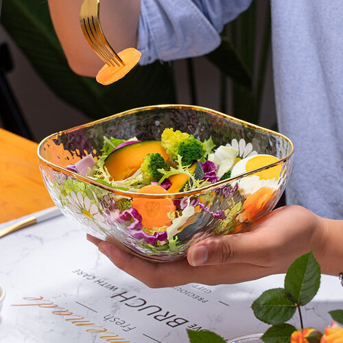 采用无铅玻璃材质,表面明亮通透,不含其他杂质。同时触感光滑,减少油脂附着,方便用餐后清洁,不易留污垢。
