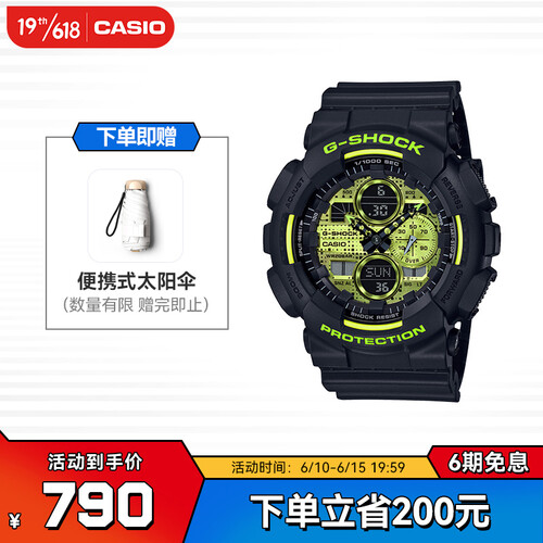 以酷黑色为低调,表盘采用了大面积的荧光绿色来晕染,颜色饱和度高,醒目炫酷。表带与表壳均采用了黑色,便于穿搭。