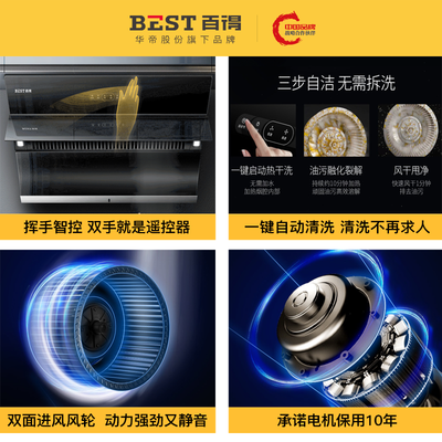 搭载双面进风风轮,可以提高进烟量,排烟速度更快。搭配热炫自动洗,能够减少烟机内部油污,持久保持稳定排烟。