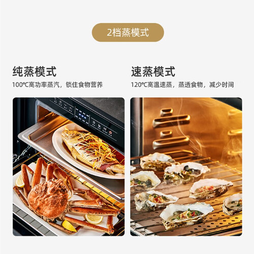 蒸箱具有四十道智能菜单,再也不用为一日三餐吃什么而苦恼。上下双M烤管,食材烹制受热均匀,口感鲜嫩。