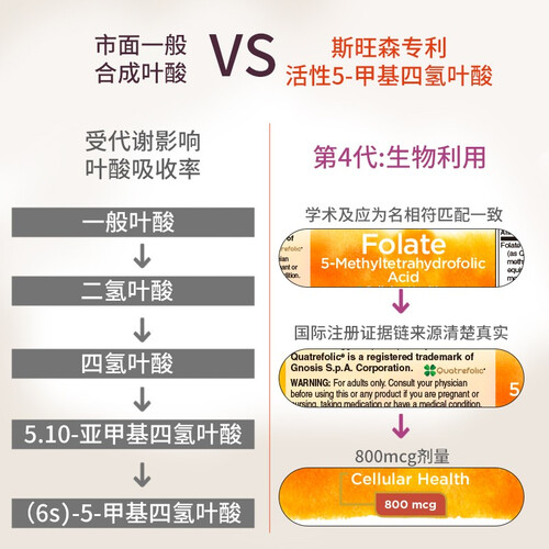 一粒含800mcg的活性叶酸,每天一粒,身体直接吸收,补足营养所需,是孕妈的好物之选。