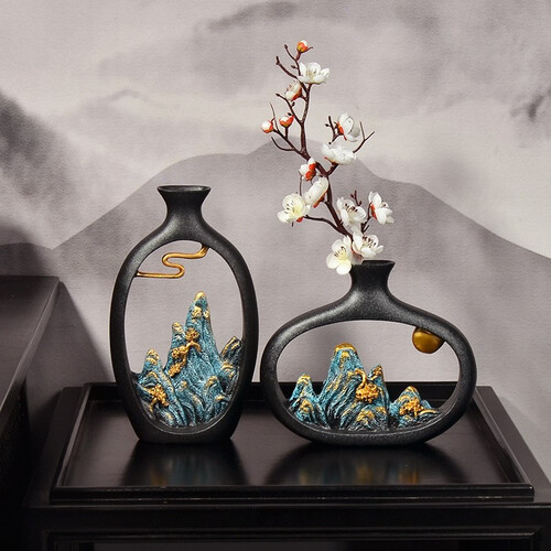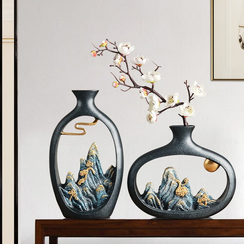 整体造型为花瓶设计,花瓶上的图案为崇山峻岭,让人觉得有着高远的志向,更好的抱负;花瓶整体线条大方又流畅。