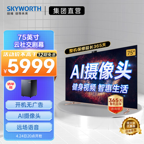 75英寸的巨幕屏,可以带来私人影院般的观影感受,还搭载了AI摄像头,可以运动健身,视频通话,使用更具趣味。