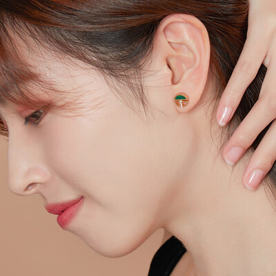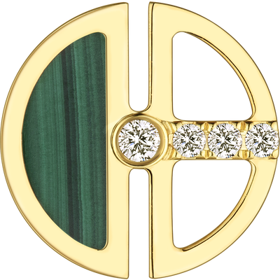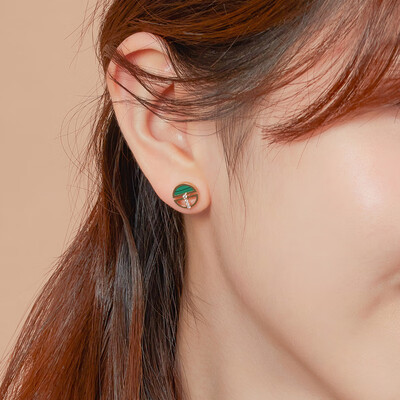 半圆设计,一半为幽绿的孔雀石,一半为镂空线条,款式时尚个性。加以细小钻石点缀,精致耀眼,提升了整体的视觉效果。